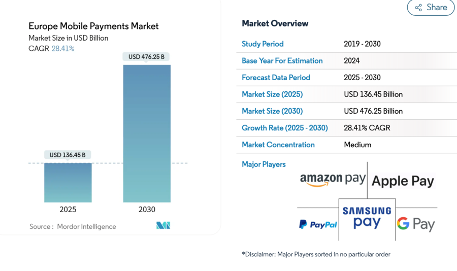 9. Research and Markets, European Mobile Payment Market Forecast (2025–2030)