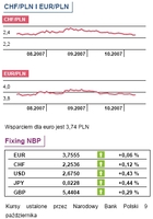 U nas kurs dolara spadł do 2,654 PLN, euro trzyma się na 3,744 PLN, a frank spadł do 2,243 PLN.
