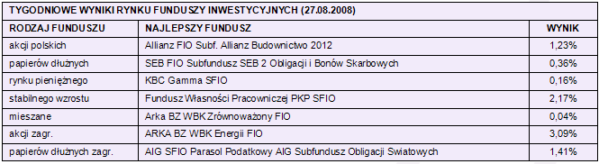 Wyniki polskiego rynku funduszy inwestycyjnych, 7 dni
